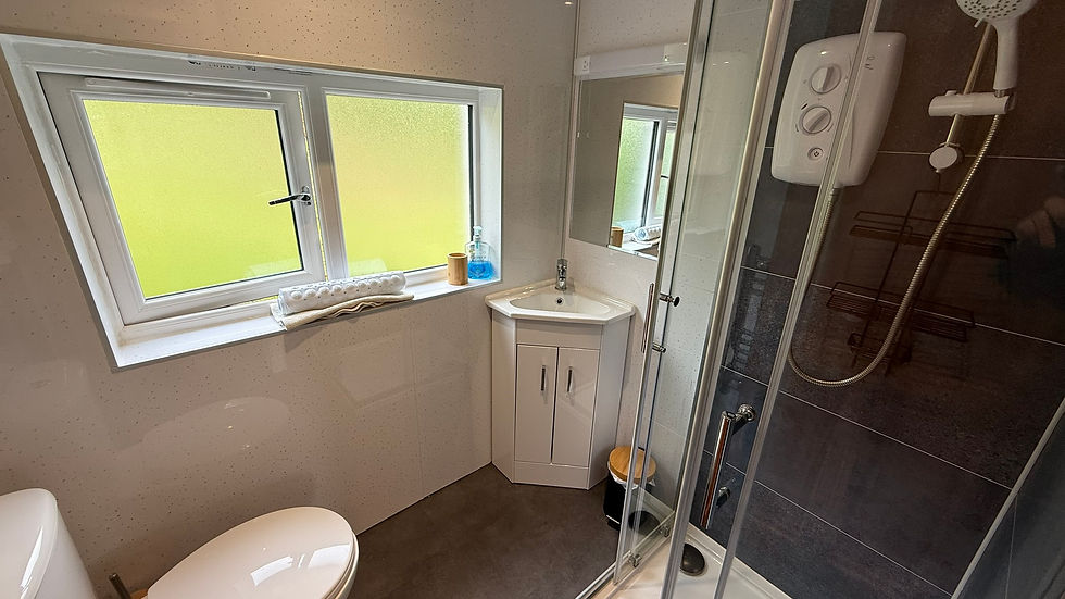 Shower room of 'Glen Nevis' chalet, fully refurbished in March 2024